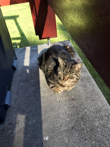 Kom bare hit til huset og mjauet og kjempe tynn snill og sulten. Vil ikke gå. Bosatt seg på verandaen