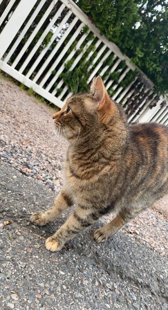 Liten katt som har oppholdt seg i nabolaget siden mandag. Ikke sett den før. Ble observert igjen i dag tidlig (onsdag 13.07)