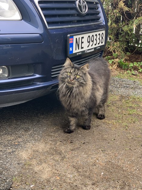 Monty kom ikke hjem som han pleier, og har vært borte siden lørdag formiddag. Han er et sosialt matvrak, og har tidligere vandret og prøvd å komme seg inn hos naboer.