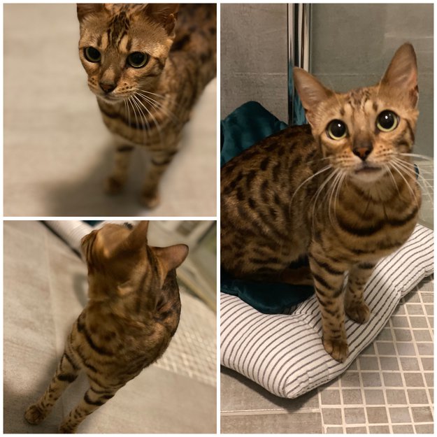 Der ble jeg møtt av en veldig ung og slank bengal som freste samtidig som den var desperat etter mat. Vi hadde med noen godbiter som hu fikk, men hu var forsatt veldig skeptisk. Flere naboer stoppet og fortalte at de hadde observert katten i nabolaget, også på nærtholdt, de siste 2-3 ukene.