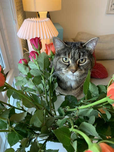 Hun er litt engstelig, følger godt med på trafikken og hva som skjer rundt henne. Litt reservert for mennesker, men kan også være kontaktsøkende. Hun heter Minette, og vil kjenne igjen lyden av navnet sitt. Ganske liten og nett til tross for sine 9 år.