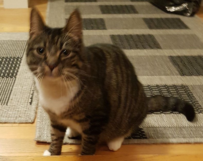 Gråstripet litt hvit hunnkatt var savnet i Heim