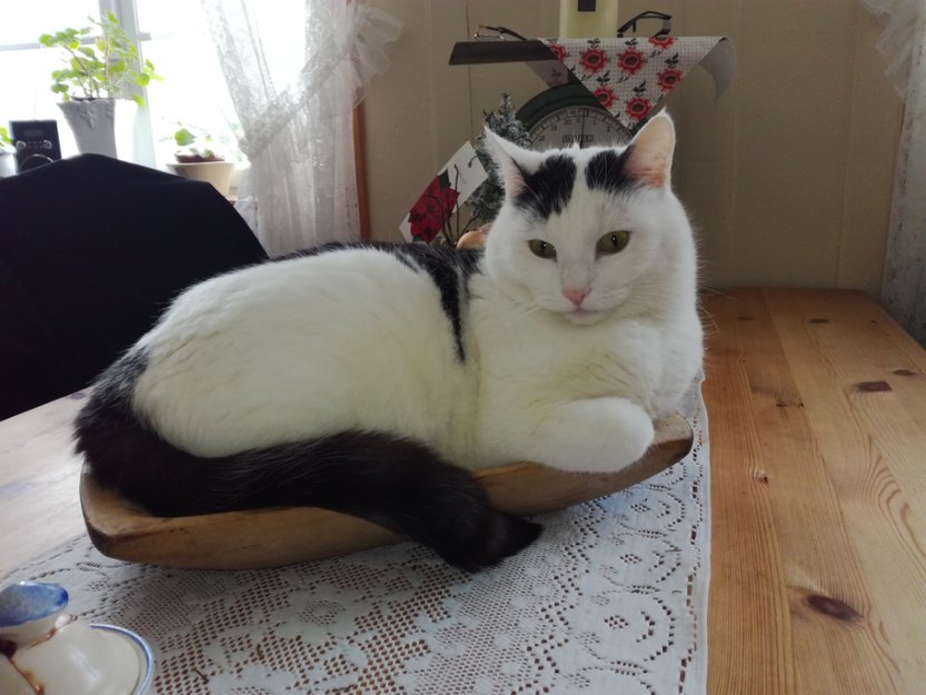 Ble sist sett ved bronken langs vestsivegen I Elverum. Hvit katt med svart hale og svarte partier på rygg og hodet. Han er chippet og har et S merke I øret.