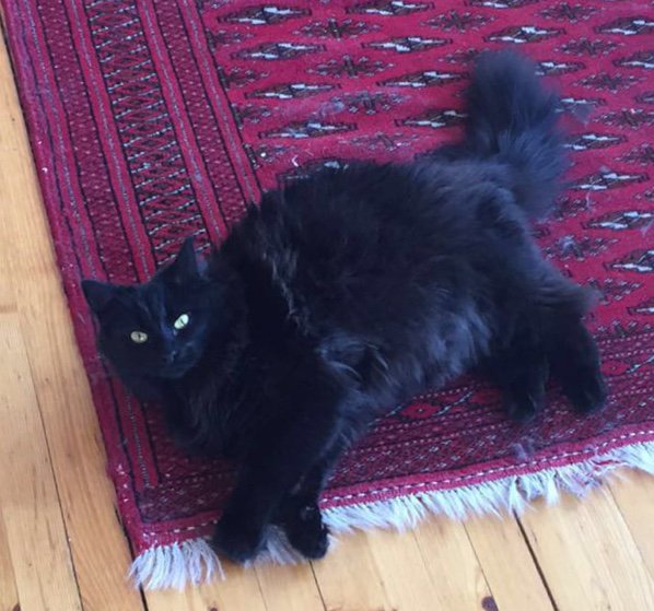Hun er 7år gammel, sterilisert og chippet. Hun har gulgrønne øyne, og pelsen er sort, i blant med et brunlig eller skjær i pelsen på magen, avhengig av lyset.