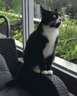 Liten i størrelse, sort katt med hvite poter/sokker, hvit mage, hvit dråpe i fjeset med svart hake. Ta bilde av henne og send meg om du ser henne! Spesielt bilde av ansiktet er viktig. Etter erfaring er det mange som blander henne med andre lignende katter.