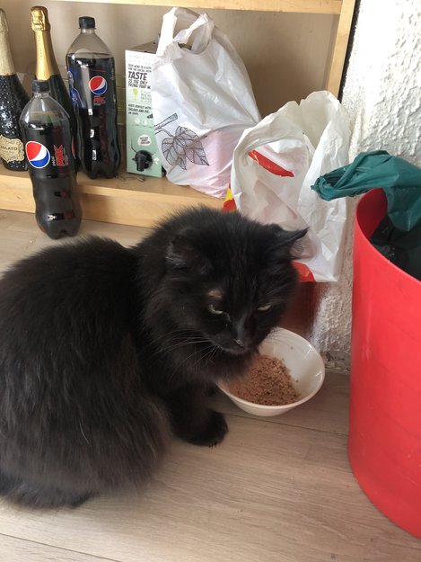 Svart langhåret katt har stått utenfor Nornevegen 9a i ca 2 uker. Virker vant til folk. Veldig selskapssyk og sulten. Har fått mat. Kommer til alle døgnets tider. Virker forlatt. Huset som er et studentkollektiv skal fraflyttes straks.