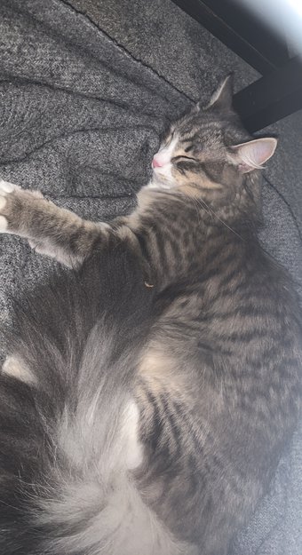 Hun er veldig kosete, hvit bart og tripe mellom øynene.