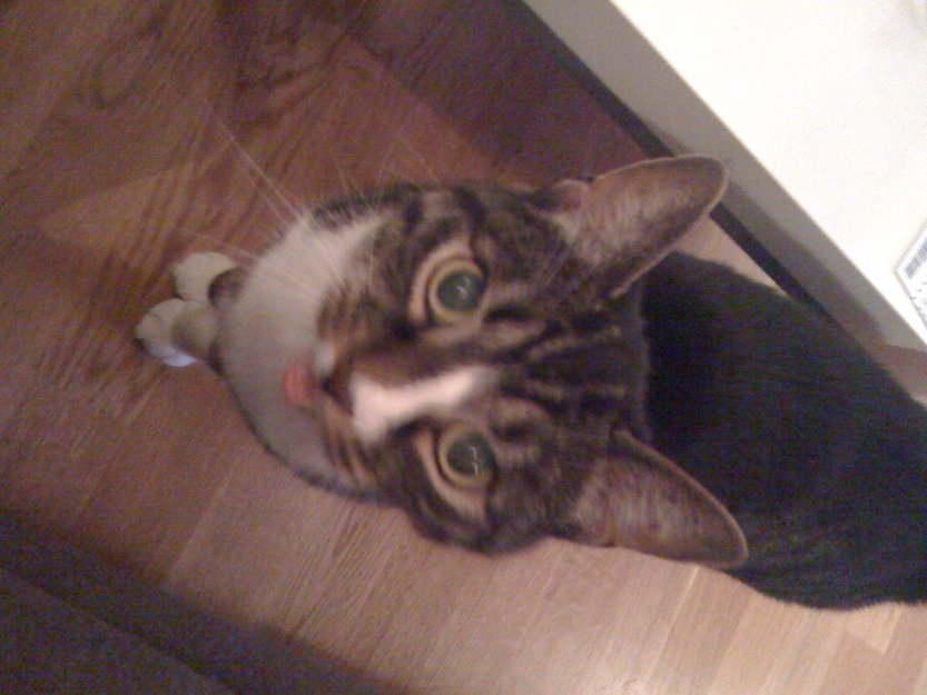 Etter en stund hørte vi henne aldri, verken "snakking" eller spiselyder, og vi antar at hun har løpt ut mens det har vært håndverkere i huset og dørene stod åpen.