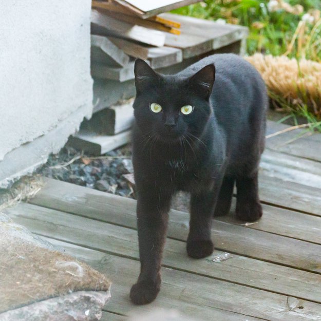 Svart ukastrert hannkatt med litt hvitt i brystet. Veldig snill og tydelig vant til folk. Voksen, men er nok ikke mange år.