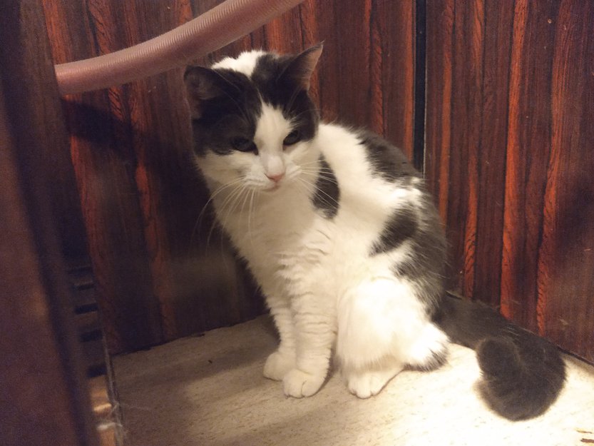 Masi er ikke vant til å være ute, men har vært litt rundt huset og i nærområdet i det siste. Lørdag 30.07 gikk hun ut en tur på kvelden, men kom ikke tilbake. Siden har vi ikke sett henne. Vi har vært rundt i området og lett og lokket de siste dagene, men uten hell. Masi er en litt engstelig og skvetten katt som neppe vil komme nær nok til å bli kost med. Hun er hvit med grå/sort rygg og hale, kort pels.