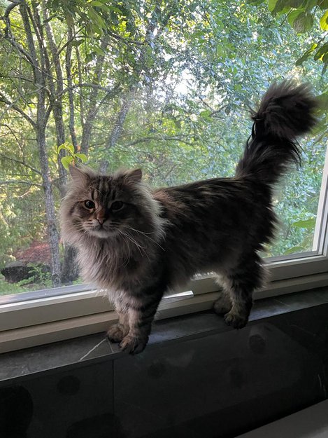 Ett år gammel sibirkatt er savnet etter ferie. Figaro er en utekatt som bruker sin egen kattedør. Han fikk vann og matt fra vår venn mens vi var på ferie en uke. Da vi kom hjem natt til 07.08 var han borte. Han pleier å gå ut og inn flere ganger om dagen, så det er veldig uvanlig for ham å være borte i 2 døgner på rad. Om noen har sett ham vennligst gi oss en beskjed.