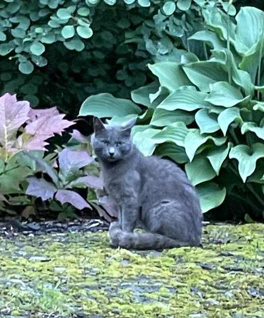 Det er tre forskjellige katter som dukket opp i boligfeltet Gangstadhaugen på Sandvollan i Inderøy i vår, rundt mai. To er litt lodne og ganske små? Trolig søsken. En er grå og trolig litt mer voksen. Vi har etterlyst eiere i området, men ingen har meldt seg. Vi håper inderlig at noen eier dem og vil komme og hente dem. Her er den grå.