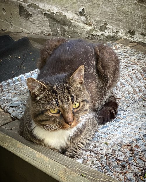 Ukastrert hannkatt dukket opp hos oss etter at vi kom fra ferie i midten av juli. Har siden kommet hver ettermiddag. Han er en fin katt, men pelsen er litt uflidd. Søker kontakt, men er også sky.