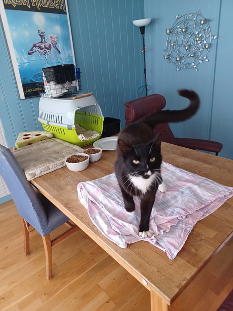 Sort og hvit huskatt . Kan være sky for fremmede. Svært glad i mat. Kan krype inn i låver og lignende for å sove. Planla gi henne orm kur da hun hadde symptomer på orm og detfor litt ekstra rund. Er sterilisert. Har chippet henne men den er desverre ikke registrert. Hun lyder navnet Sabrina eller Sibbe. Hun ble borte i måned skifte juli / august. Hun er desverre litt uredd biler/ klønete rundt biler. Hun er en god jeger. Hun er vant til store hunder.
