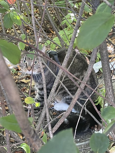 Fant en gatt gående utenfor inngangen til Sandakerveien 22/ikke langt fra Torshov Torg, gikk inn i en busk i nærheten og ble sittende inni krattet. Gikk tur med hund, så kunne ikke stoppe og hjelpe der og da. Da jeg var tilbake var katten borte igjen.