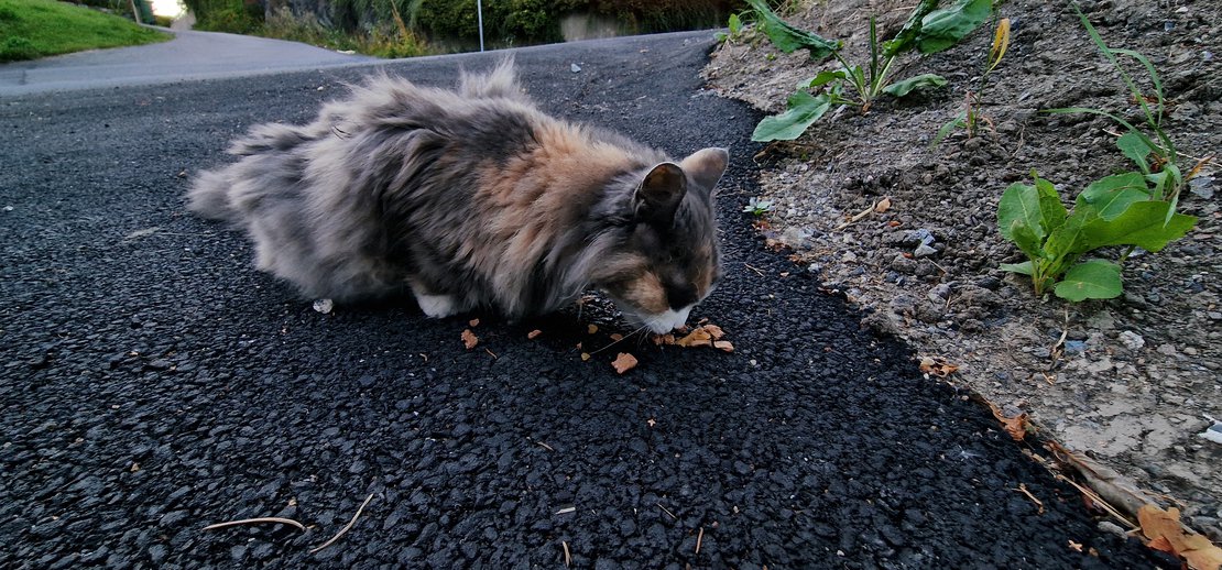 I found this cat at evening. He was hungry. I gave him food but didn't take the cat because I didn't know the situation. The next day the cat was in the same place. I gave food again. He was very hungry but he ate slowly. Maybe he has some problems with teeth. In case of contact, please write an SMS to 47738159.