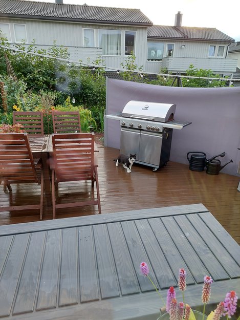 Pusen holder seg rundt huset og ser ikke ut som hun finner veien hjem