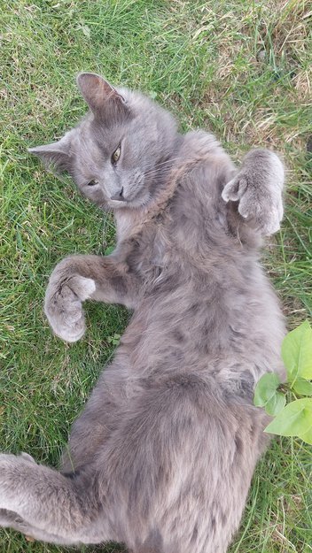Dukket opp på trappen og var veldig selskapssyk. Virker frisk, men tynn.