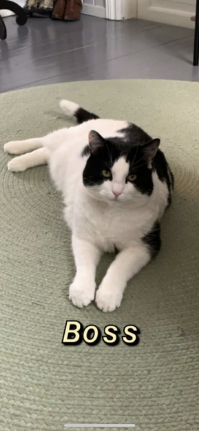 Stor katt, mest hvit. Svart på ryggen å 2/3 av ansiktet. Utrolig sosial å snill. Lyder navnet Bjørn
