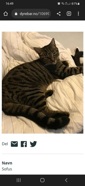 Sofus stakk ut ved et uhell 16.08.2022 fra Bjørkliveien 31 og har ikke kommet hjem igjen. Rømt en gang før å ble funnet i nærheten av Rema i Eide sentrum etter noen mnd.