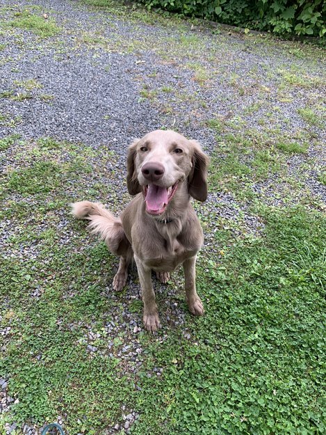En grå/brun tispe var løs i gaten på Tåsen. Hun har sort halsbånd men det er ingen navn eller telefonnummer på det. Jeg kjenner henne igjen men vet ikke hvor hun bor. Jeg har foreløpig tatt henne med hjem til inngjerdet hage der det er tryggere for henne enn å være i gaten.