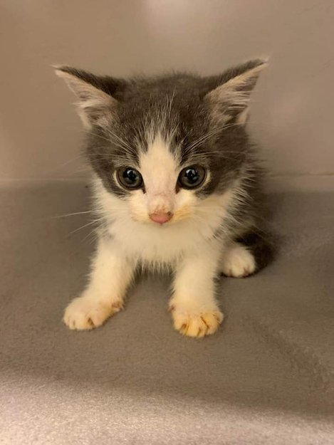 En av tre kattunger som dukket opp på hytta til melder, som ligger i Strandvegen/Selbustrand. Kattemor funnet påkjørt og død. Katten blir nå ivaretatt av Dyrebeskyttelsen sør-Trøndelag og har fått navnet Sølve