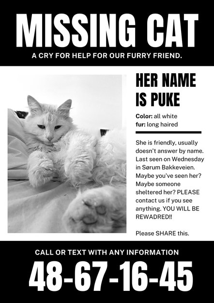 White hunnkatt savnet i Lillestrøm