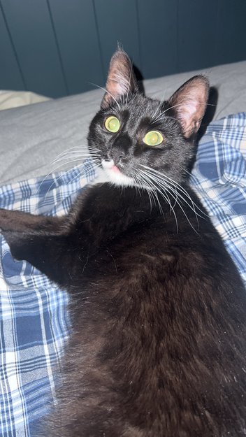 Han er svart og hvit og har på seg hvite «sokker» han har en halv hvit bart i ansiktet. Han lyder ikke navnet sitt, men er kontaktsøkende og veldig kosete. Han er også ganske nyskjerrig av seg.