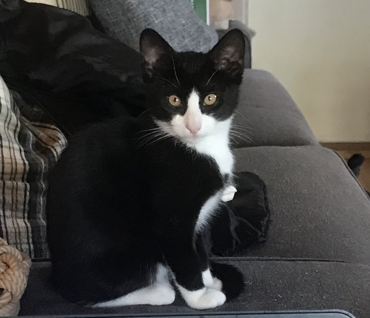 Kattunge, gutt, på ca 4 mnd funnet i Frodegaten, Tønsberg sentrum, 26/8. De som fant han har vært rundt i nabolaget, men ingen savner noen pus.