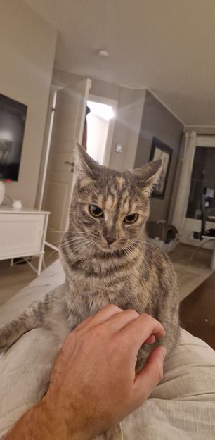 Kom hjem rundt midnatt på dag seks ☺️ Var varm og lun i pelsen samt lite gira på mat, så hun hadde åpenbart vært innendørs nylig.