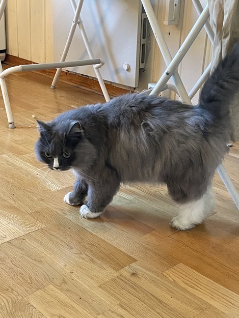 Har kommet en katt hit som bare går å mjauer. Vil inn. Virker fin i pelsen og godt i hold. Hoppet inn i bilen til noen her så legger ut her i tilfelle den har kommet seg hit i en bil også