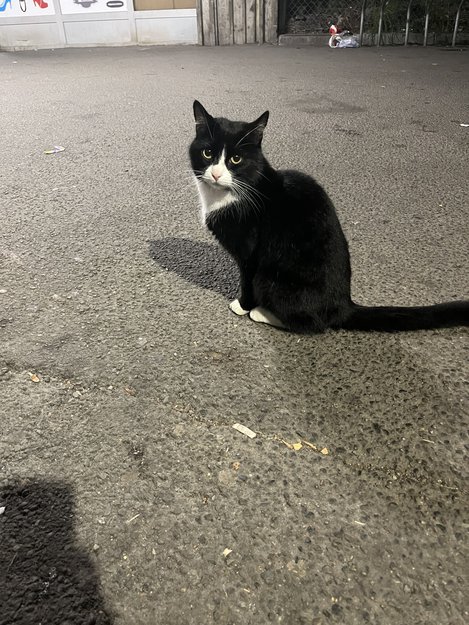 Liten svart og hvit (antagelig ganske ung) katt som oppholdt seg på Grorud T-bane. Oppmerksomhetssøkende og kosete. Fin pels. Er der hver kveld i følge en annen som var til stede. Bor sikkert i nærheten, men man vet jo aldri.
