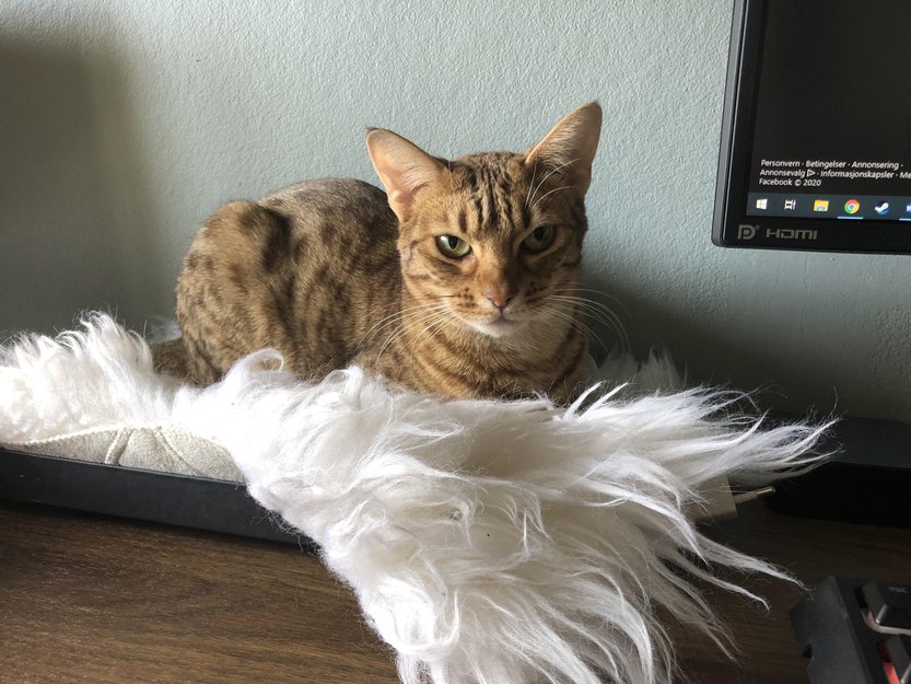 Strengt tatt en innekatt og sikkert veldig redd og mjauer masse, reagerer på navnet 'Kedi', er tynn og atletisk. Er chip'et men har tidligere vært problemer med chipen