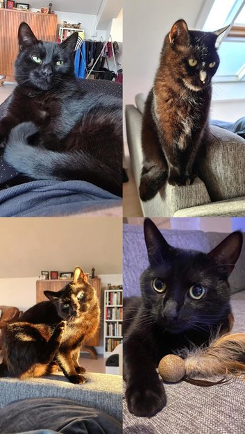 Sort katt som i rett sollys ser brun ut. Veldig kosete og kontaktsøkende, men gjemmer seg ved høye lyder(støvsuger etc). Har et arr på nesen. Er chippet, men går uten halsbånd.