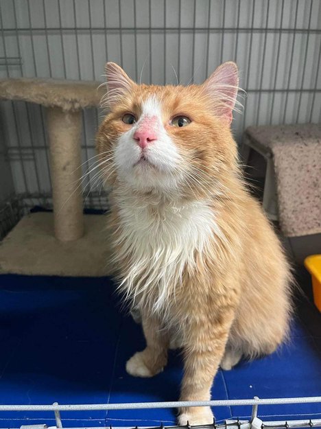Pus har gått lenge ute på en gård og ble fanget inn og tatt med til veterinær. Ukastrert hannkatt uten ID-chip. Tam og veldig kosete. Veldig pratsom.