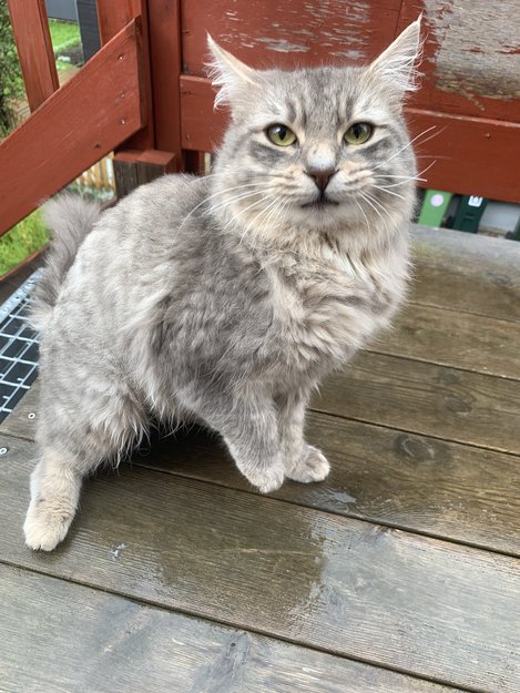 En ung ukastrert hannkatt (uten chip) har flyttet inn på verandaen vår og prøver så godt den kan å komme inn i huset. Den er veldig kontaktsøkende og glad i folk, så vi antar at den har et hjem, men har ikke klart å finne ut hvor den bor.