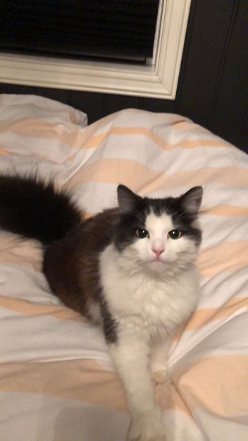 Katten har veldig fyldig hale, som ligger oppover ryggen. Hun er liten av vekst.