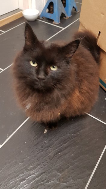 Svart langhåret og veldig sulten katt har holdt til i området en ukes tid. Veldig kosete. Tror det kan være en kastrert hannkatt.