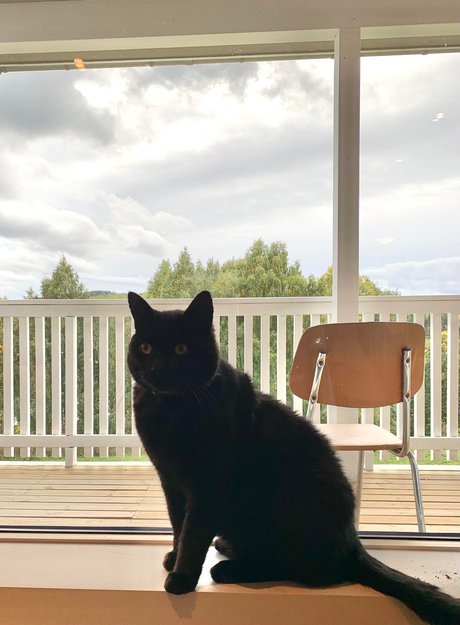 Svart, stor katt. Liker Sei. Har/hadde et rødt halsbånd med GPS, men dette har nok falt av. Sist sett rett ved Granum Gård.