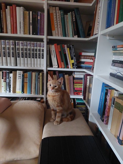 5 mnd rødstripete kattepus smatt ut av et åpent vindu på Kampen i dag! Vært borte i 6 timer. Er veldig spretten og leken og samtidig svært kosete og menneskekjær, men er jo ikke vant til å være utendørs så er vel helst redd og sky nå.