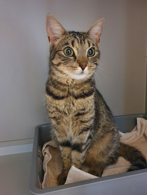 Katten har gått ved et bolighus i området, tam og sosial, virker sulten. Den blir ivaretatt av oss.