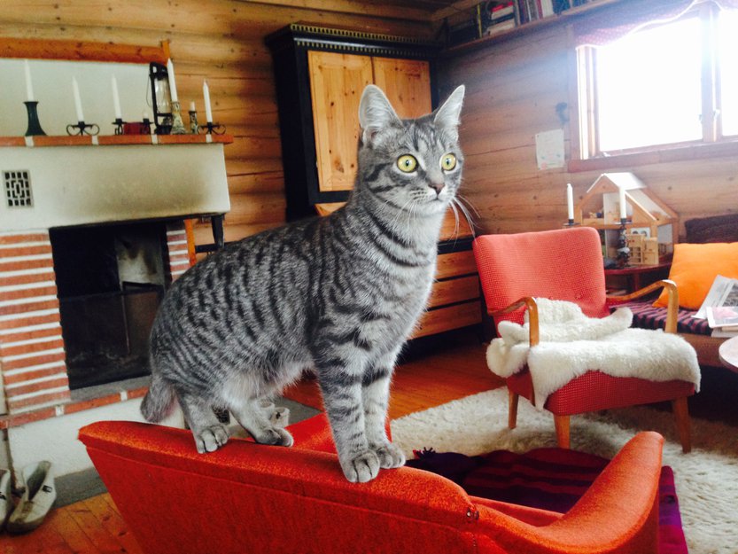 8 år gammel korthåret tiger. Liten av vekst. Svært sky og forsiktig. Lyder navnet Mia.