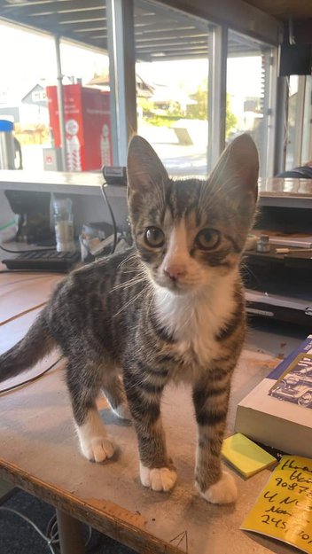 Liten hannkatt uten chip funnet på Kvernaland. Ca 14-15 uker. Helt tam