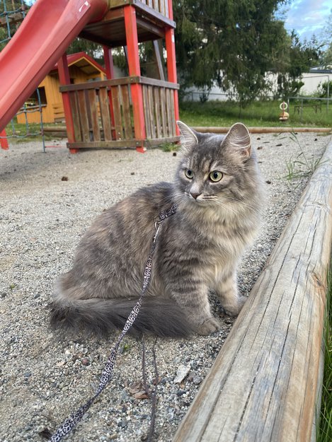 Lucy er en langhåret skogskatt på ca 3,5kg. Hun er 1år 5måneder gammel. Hun har grå og hvit pels, men mest grå med litt oransjeskjær. Hun har grønn/gule øyne. De ser gulere ut i dagslyset. Hun er en veldig redd katt.