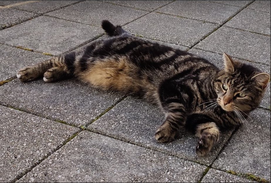 Tigergutt er 4,5år, han har vært utekatt siden han var 6 mnd. Han har alltid komt når jeg plystrer på han og pleier å reagere på navnet sitt. Han er stripete og spraglete over helekroppen, utenom at han har en hvit flekk på hver av bakpotene.