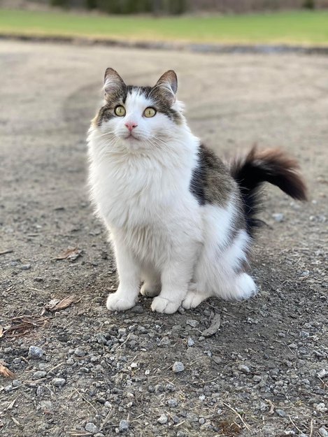 Hvit og grå/sort hannkatt savnet i Indre Østfold