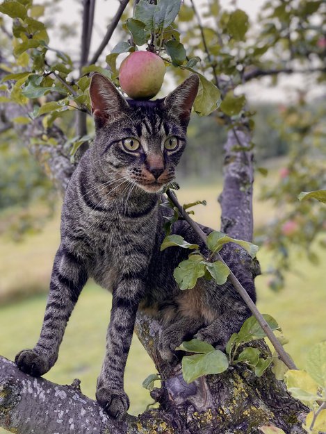 Gråstripet, lang, slank og glatt i pelsen. Mer brun på nesen enn andre gråstripete.