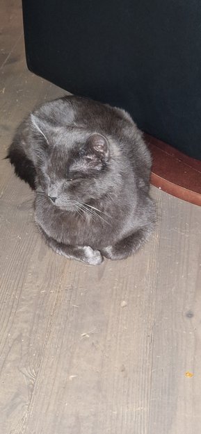 Katten er mørk helgrå men heller ikke svart. Ikke veldig stor i størrelse.