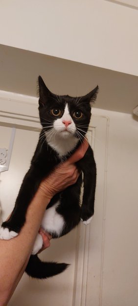 Tror det er en jente på noen mnd. Har henne/han inne på badet mitt. Leken og kjærlig pus. Håper eier kommer til rette!