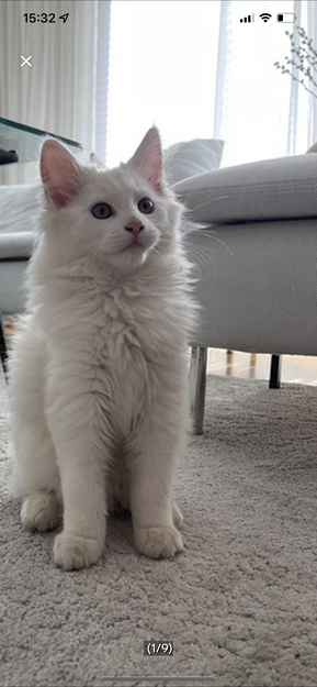 Hvit, kattunge født 26/06/22, Forsvant plutselig 29/09/22.